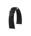 Italian leather with a natural grain, soft supple touch and features rally style perforations with a matching tone classic stitch and a rubberised water resistant lining. Fitted with a classic plain polished stainless steel buckle.